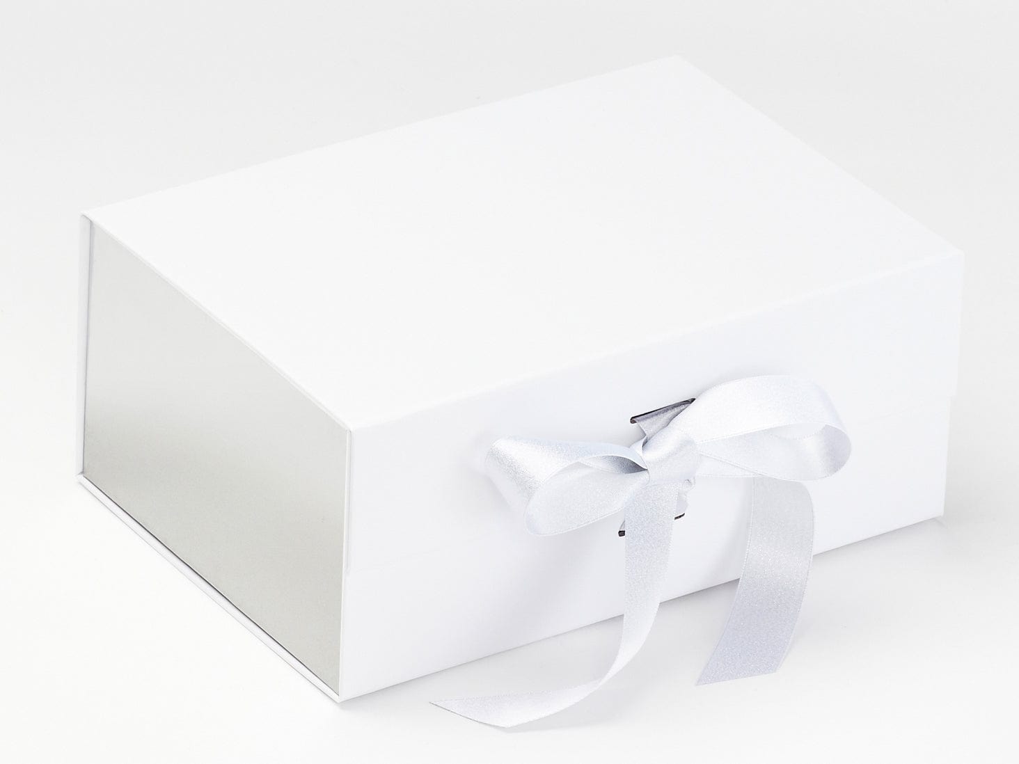 This soft white satin ribbon works particularly well as a contrasting texture alongside the grosgrain ribbon supplied with all of our slot gift boxes. The smooth satin surface and delicate metallic sparkle elevate presentation without overpowering your packaging.
