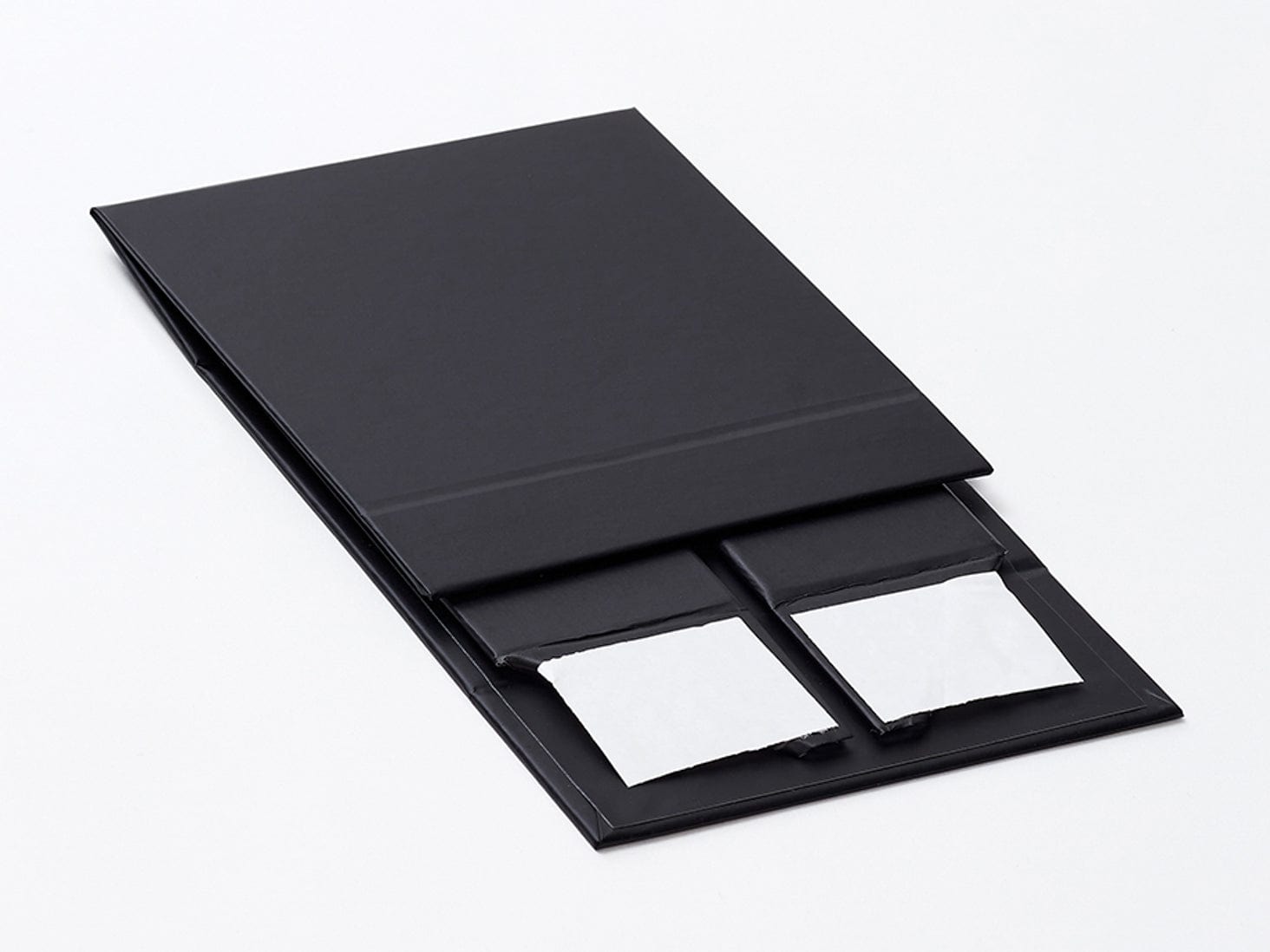 • Covered fully inside and outside with 157gsm art paper flood printed black and with matte lamination.