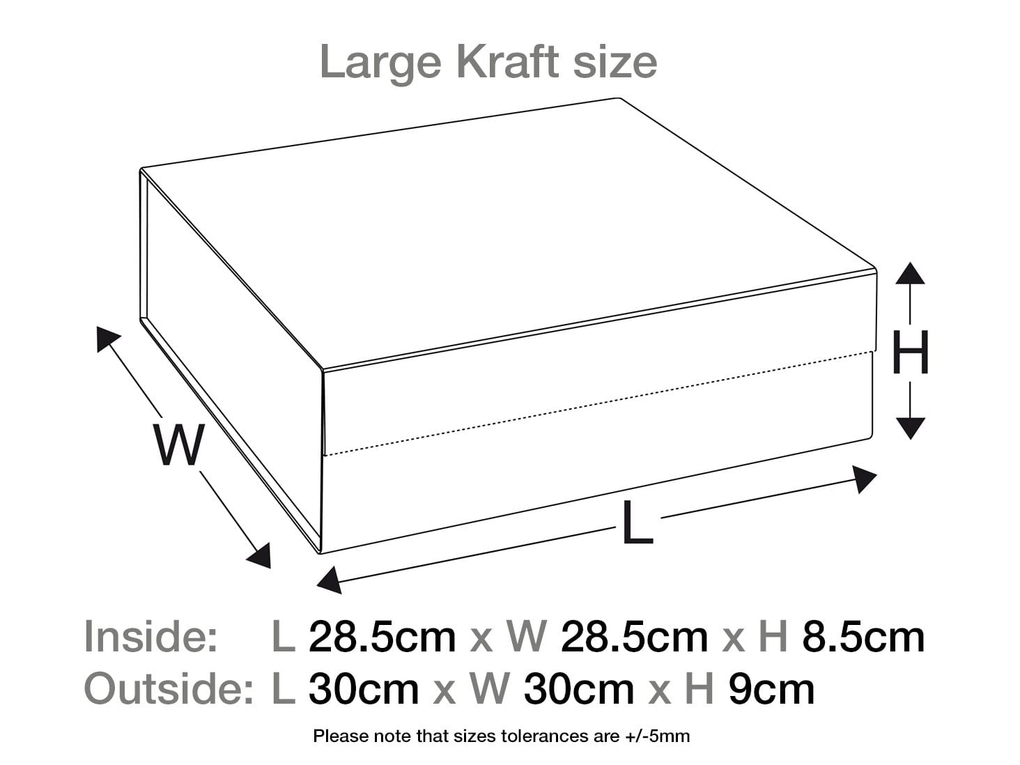 Useful Tip: Cut out a piece of paper to the internal footprint size of the box (28.5cm x 28.5cm) to check your products fit within. It isn’t an exact science but works well for fixed-size items such as glass bottles, or you can fold soft items and use a ruler to check the required height to fit within 8.5cm.