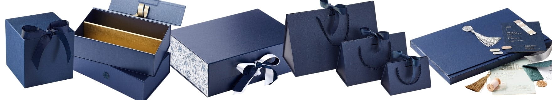 Our full range of gift boxes are available in navy, including magnetic closure boxes, hybrid BoxBags®, shallow DocuBoxes, and premium SoftBox cartons - all crafted from the highest quality materials for a refined and unique finish.