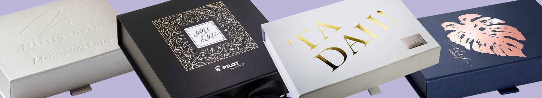 All boxes can be printed, foil blocked, or debossed with your logo on a minimum quantity of 24 boxes.