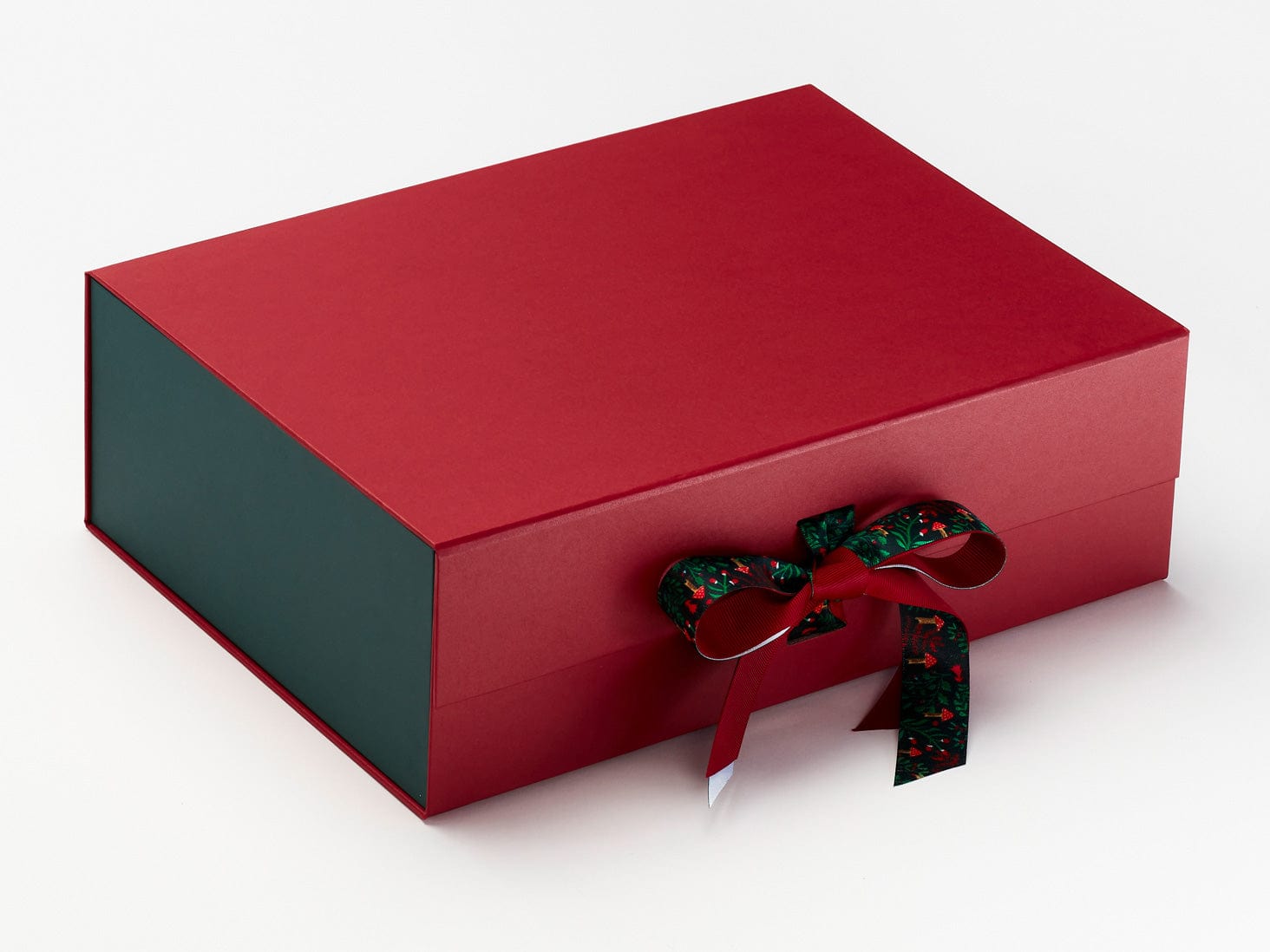 The dark green woodland design pairs particularly well with black, white, hunter green, claret and red gift boxes.