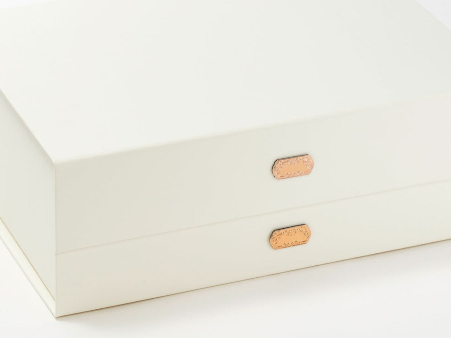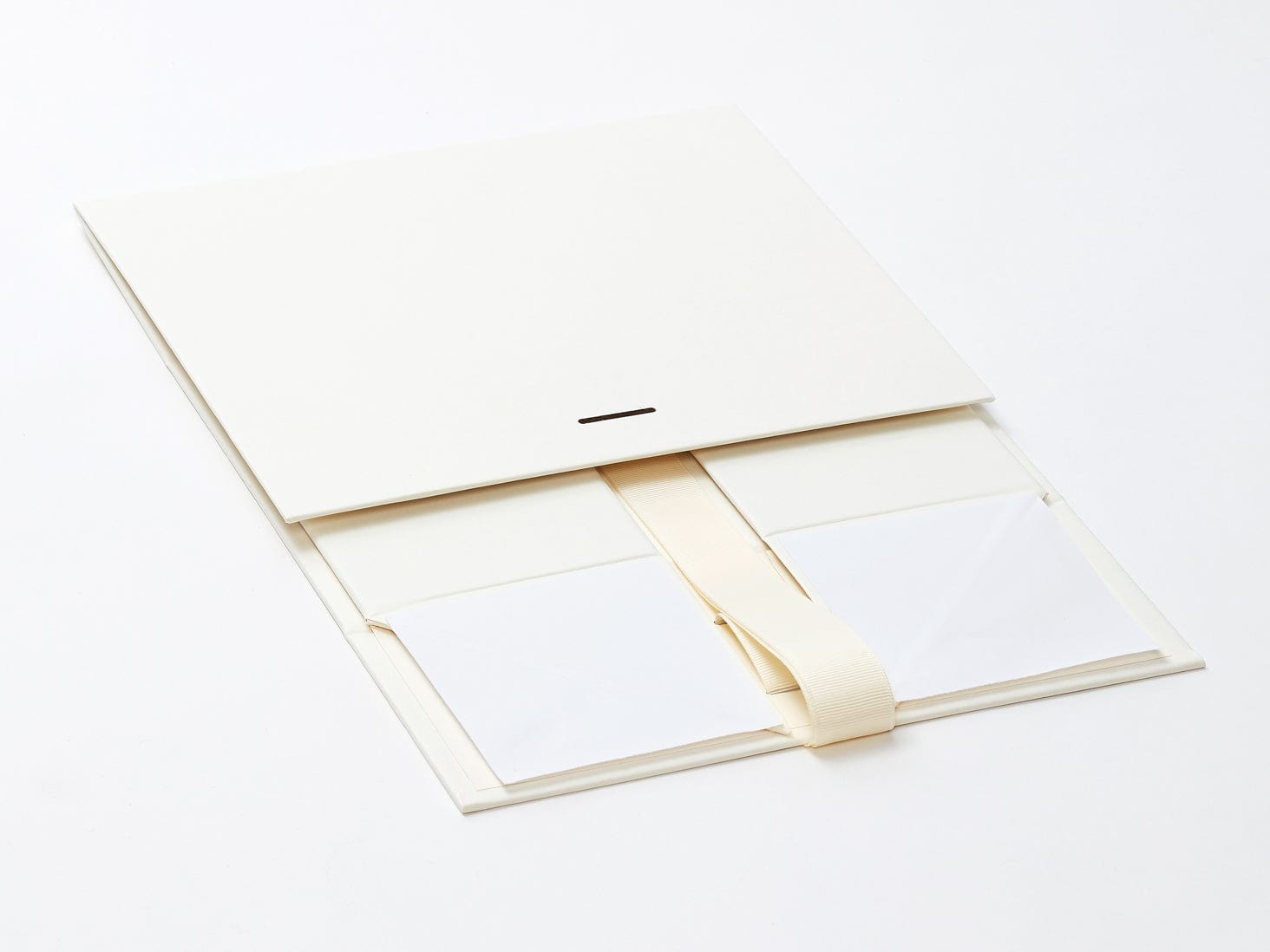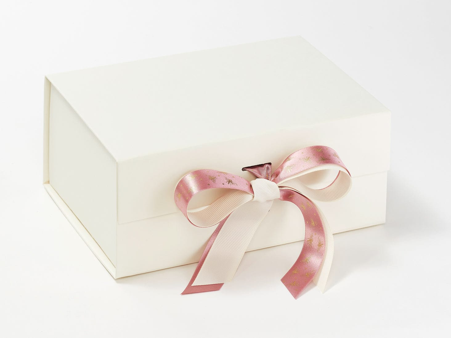 Ivory A5 Deep gift boxes with changeable ribbon are ideal for wedding and baby hampers, luxury stationery and refined keepsake gifting. Their soft, true-ivory tone feels warm, elegant and premium — a beautiful alternative to stark white.