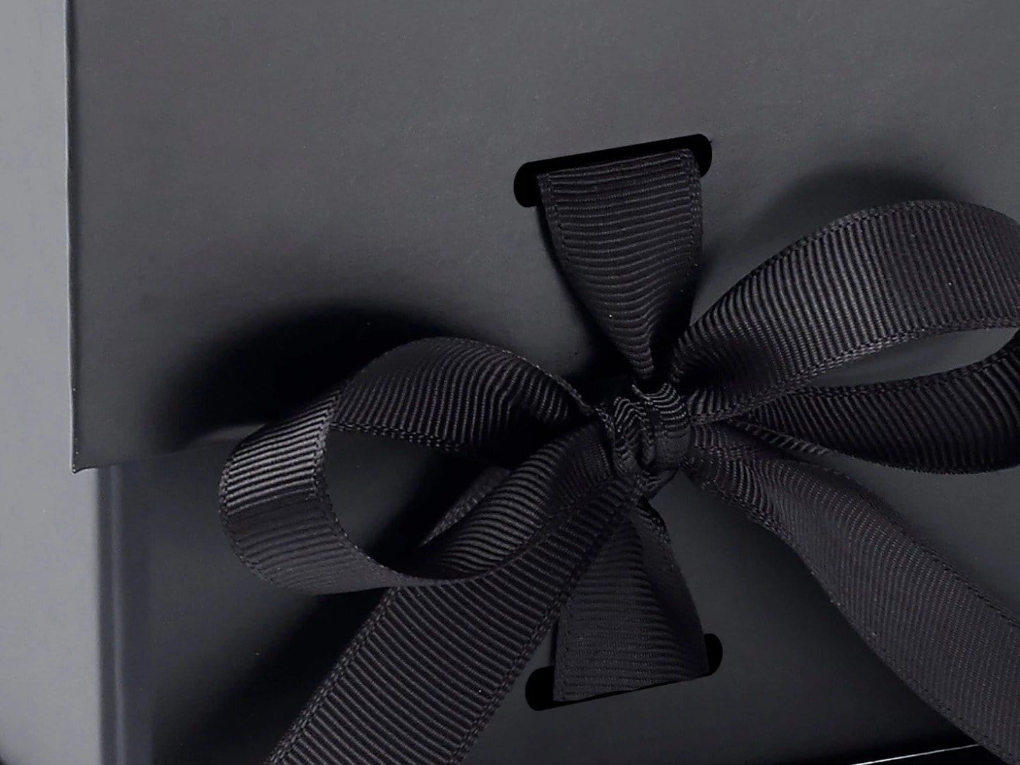 Our Black Large Cube Folding Gift Boxes (12.5cm / 5") with slots and changeable ribbon offer timeless, high-impact luxury packaging. Featuring a sleek black anti-scratch finish and premium construction, they are ideal for candles, soaps, sweets, chocolate gifts, ceramic mugs, glass baubles and cosmetics.