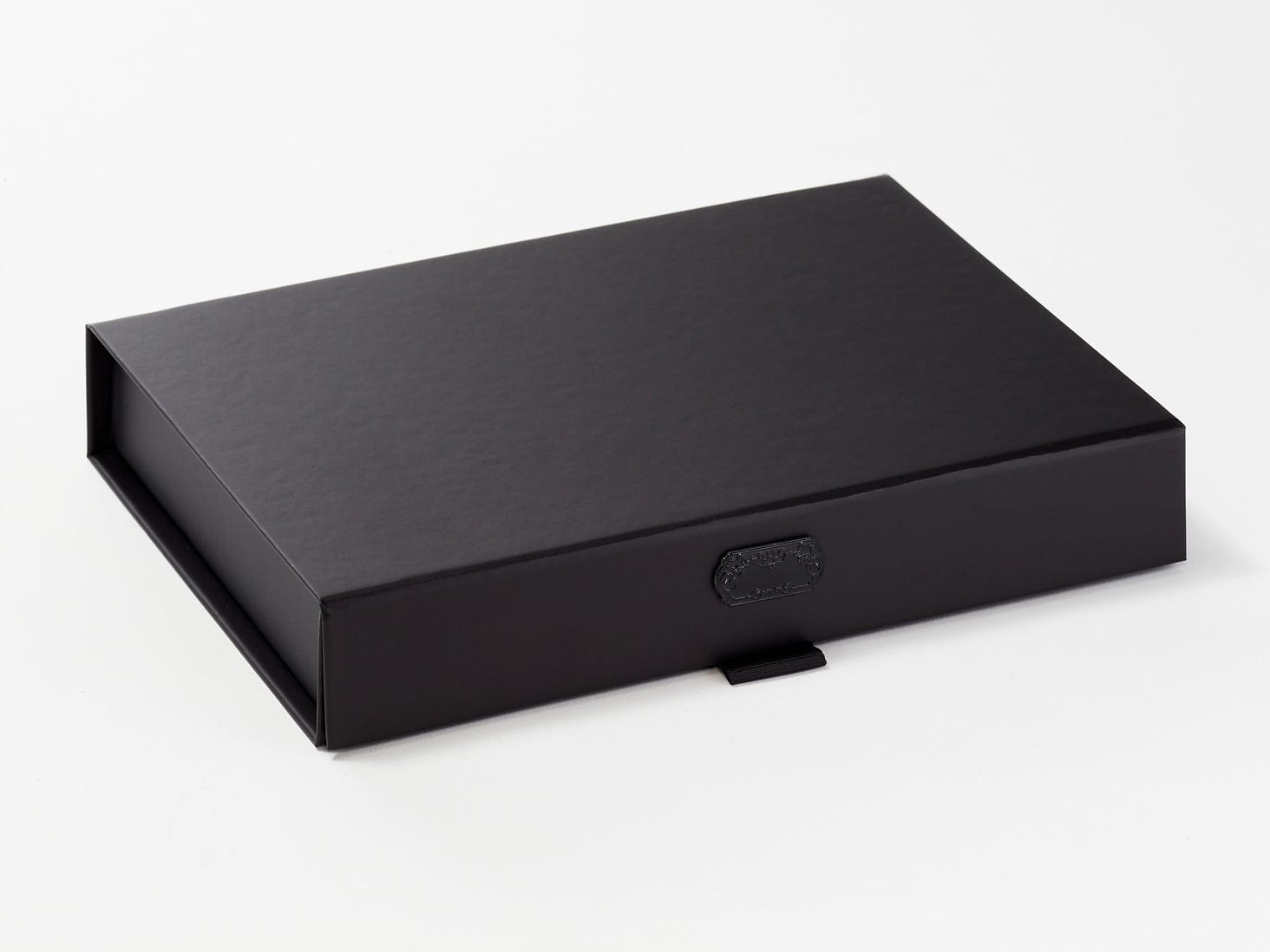 Our black metal slot decal labels feature a beautifully detailed 3D relief pattern and are a unique self-adhesive decorative accessory for our slot gift boxes with changeable ribbon.