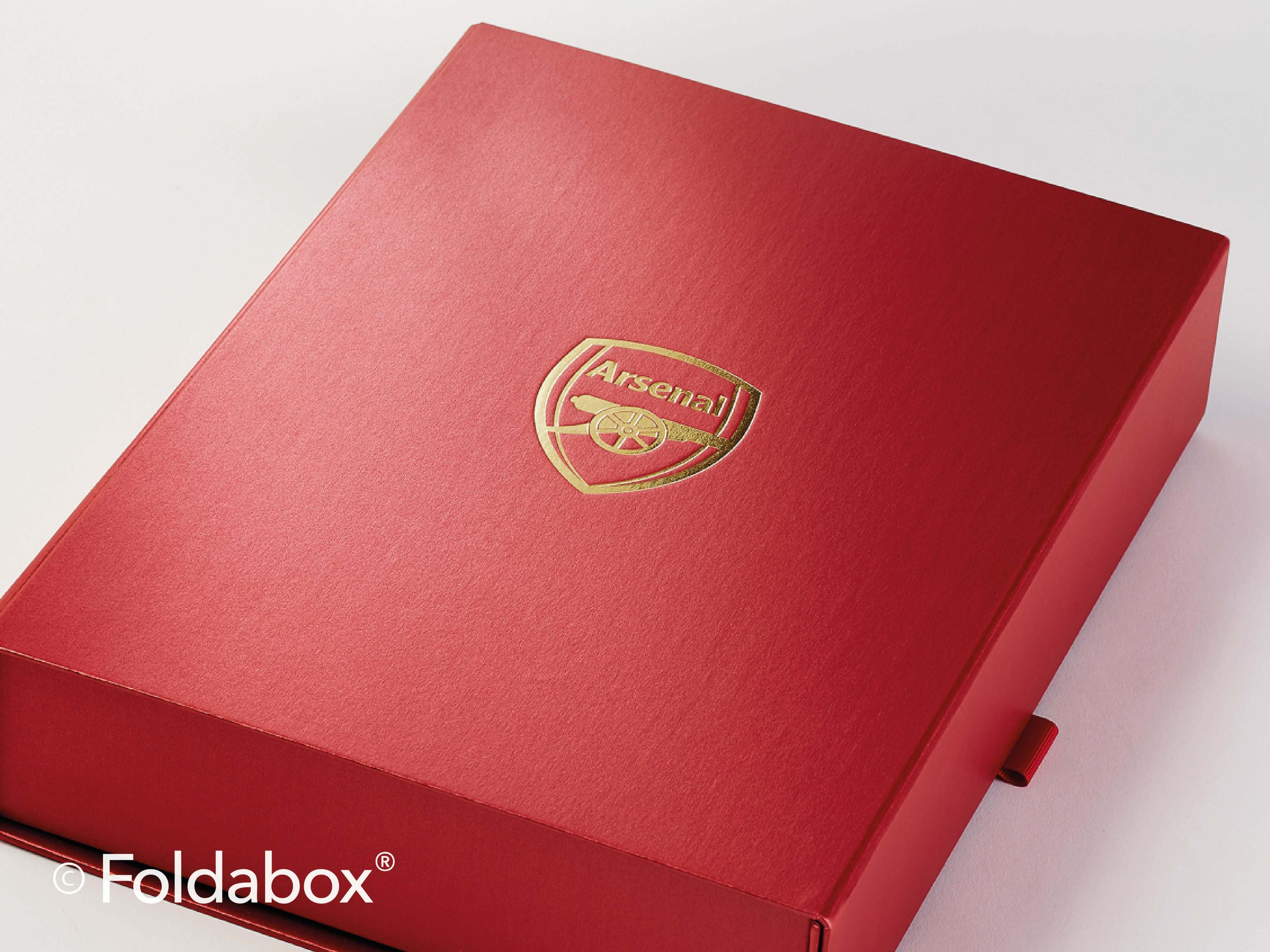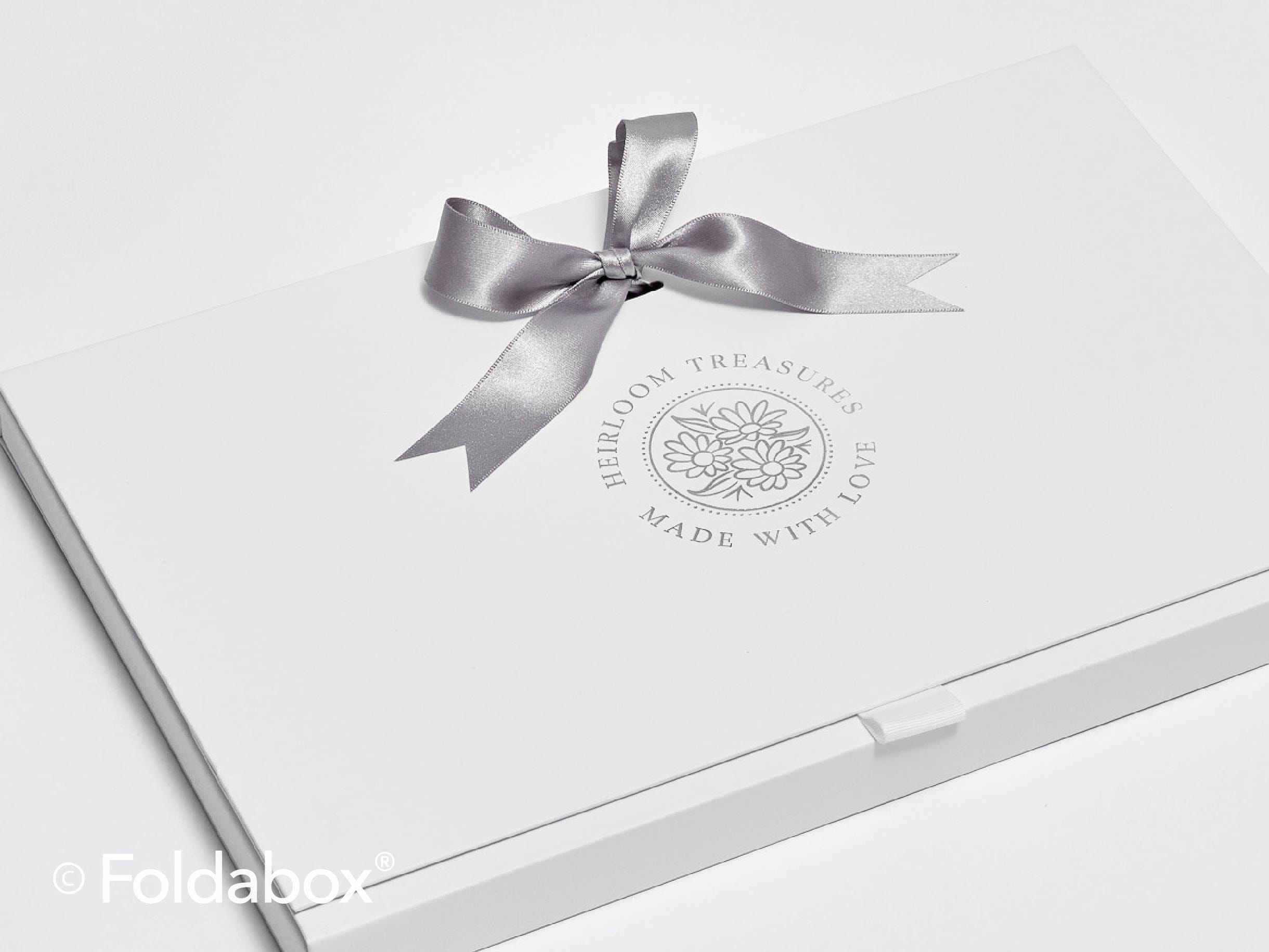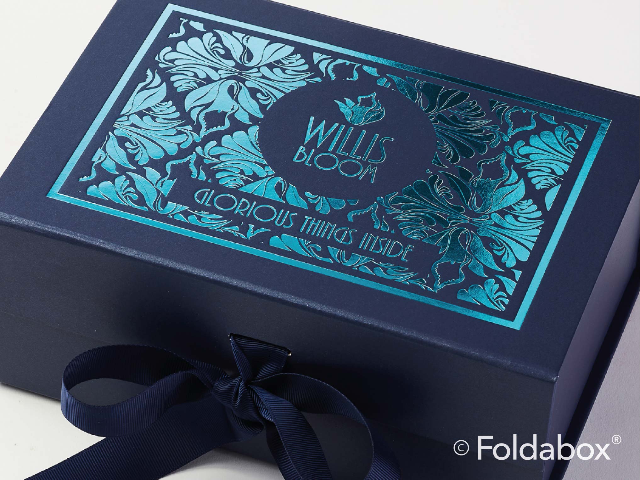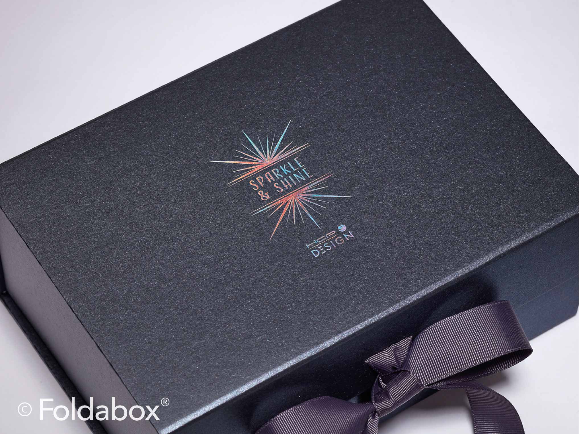Your chosen foil colour is heat-pressed into the surface of the box using a precision-engraved metal die featuring your logo or design. The technique creates a slightly recessed impression in the surface, resulting in a crisp, luxurious finish. Foils are available in matt, satin or shiny metallic options.