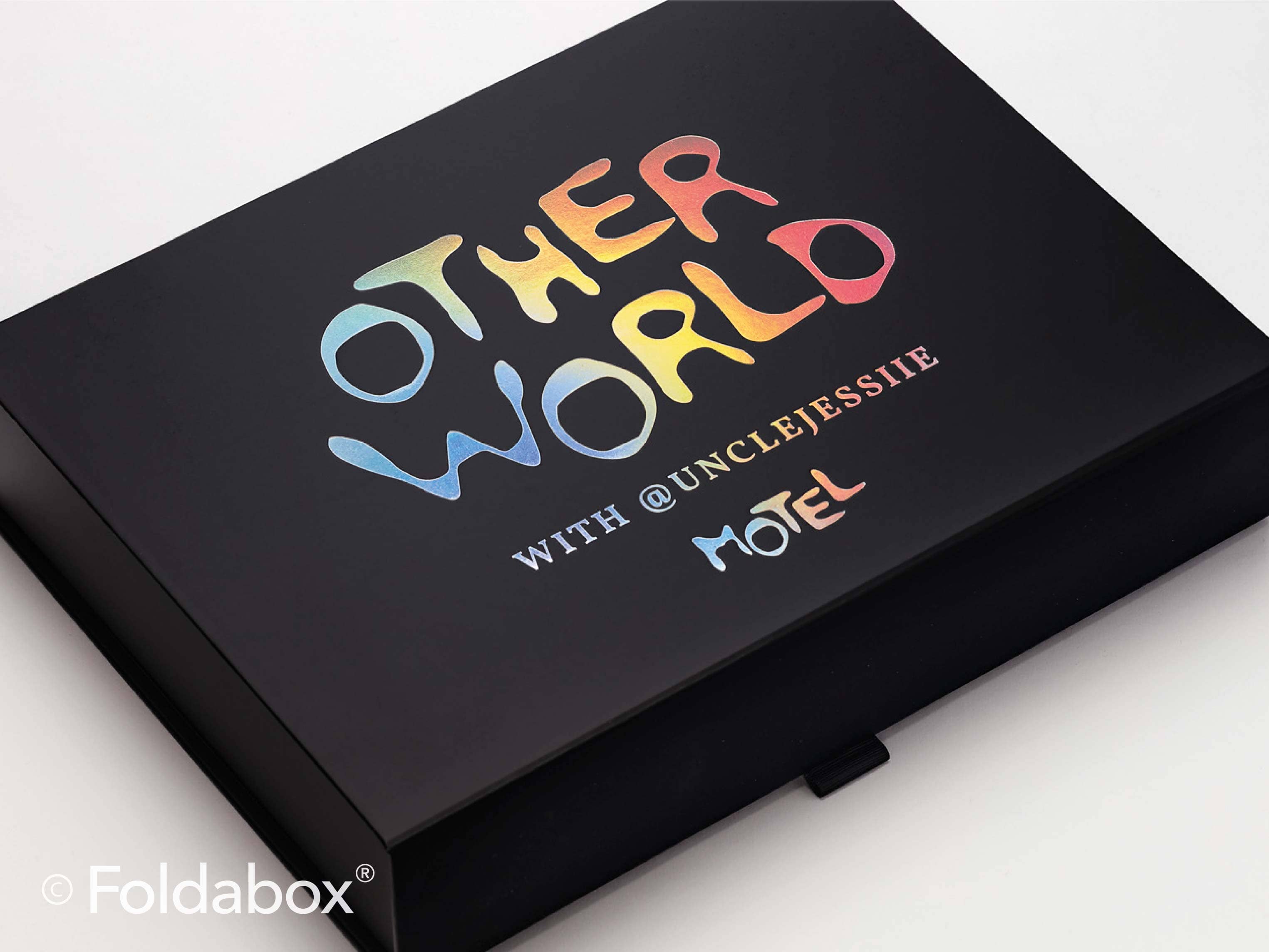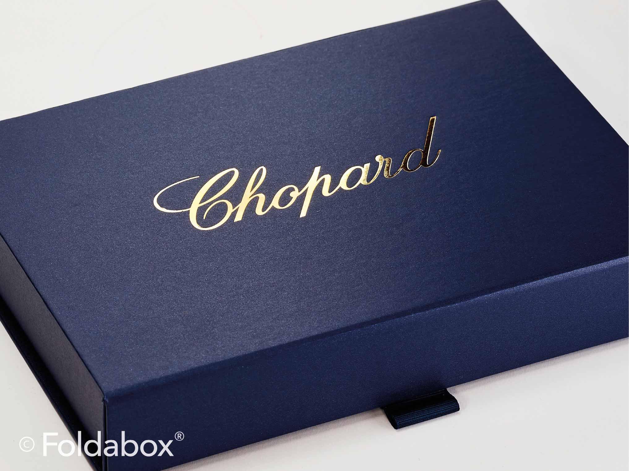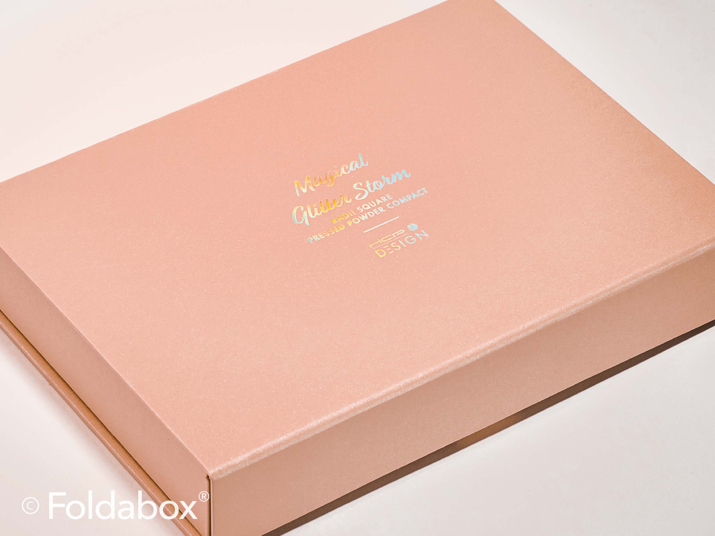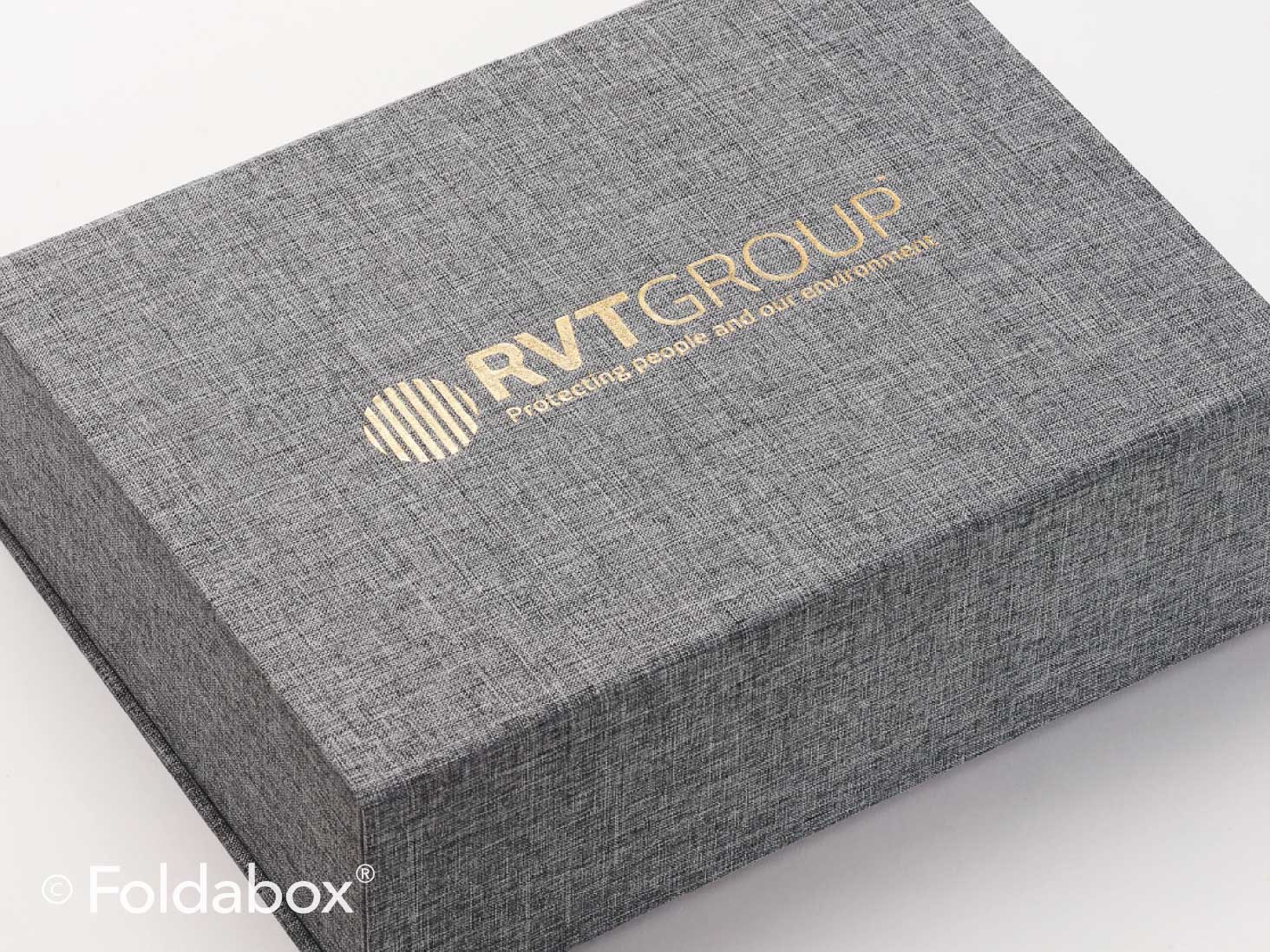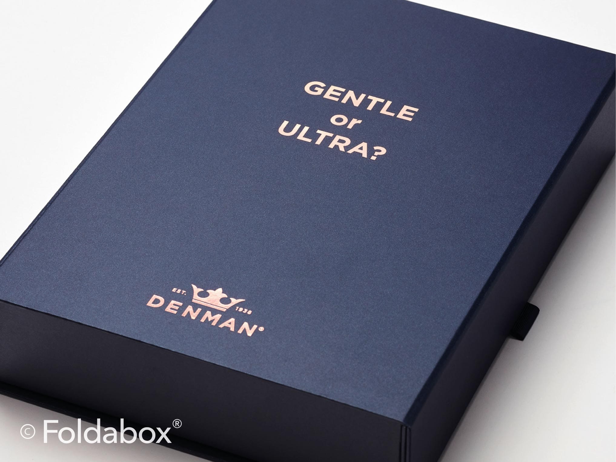 Your chosen foil colour is heat-pressed into the surface of the box using a precision-engraved metal die featuring your logo or design. The technique creates a slightly recessed impression in the surface, resulting in a crisp, luxurious finish. Foils are available in matt, satin or shiny metallic options.