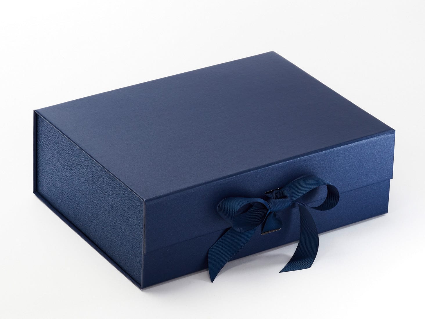 Navy Luxury Tissue Paper and various shades of Navy Ribbon and Decorative Closures are also available to add a beautiful finishing touch to your unique gift packaging solution.