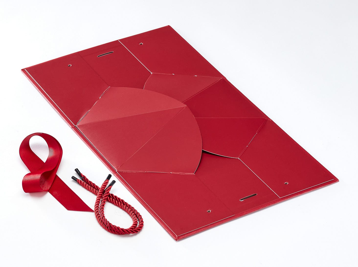 Order single or multiple samples of our Red Medium BoxBag®, the perfect hybrid luxury gift packaging solution. Premium to paper gift bags thanks to a rigid jacket, yet more cost-effective than a full gift box.